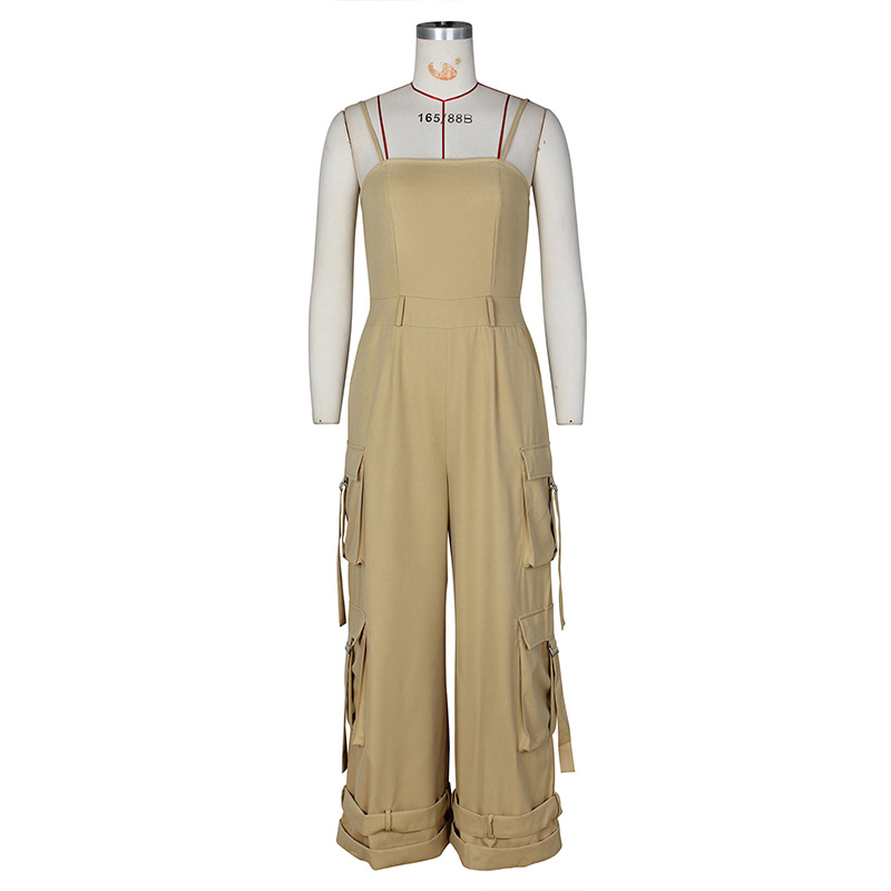 Stay cool and chic this summer with our Women’s Solid Color Sleeveless Jumpsuit ! This trendy one-piece features a relaxed wide-leg silhouette with adjustable ankle hem for customizable styling, plus four functional pockets for both fashion and utility.